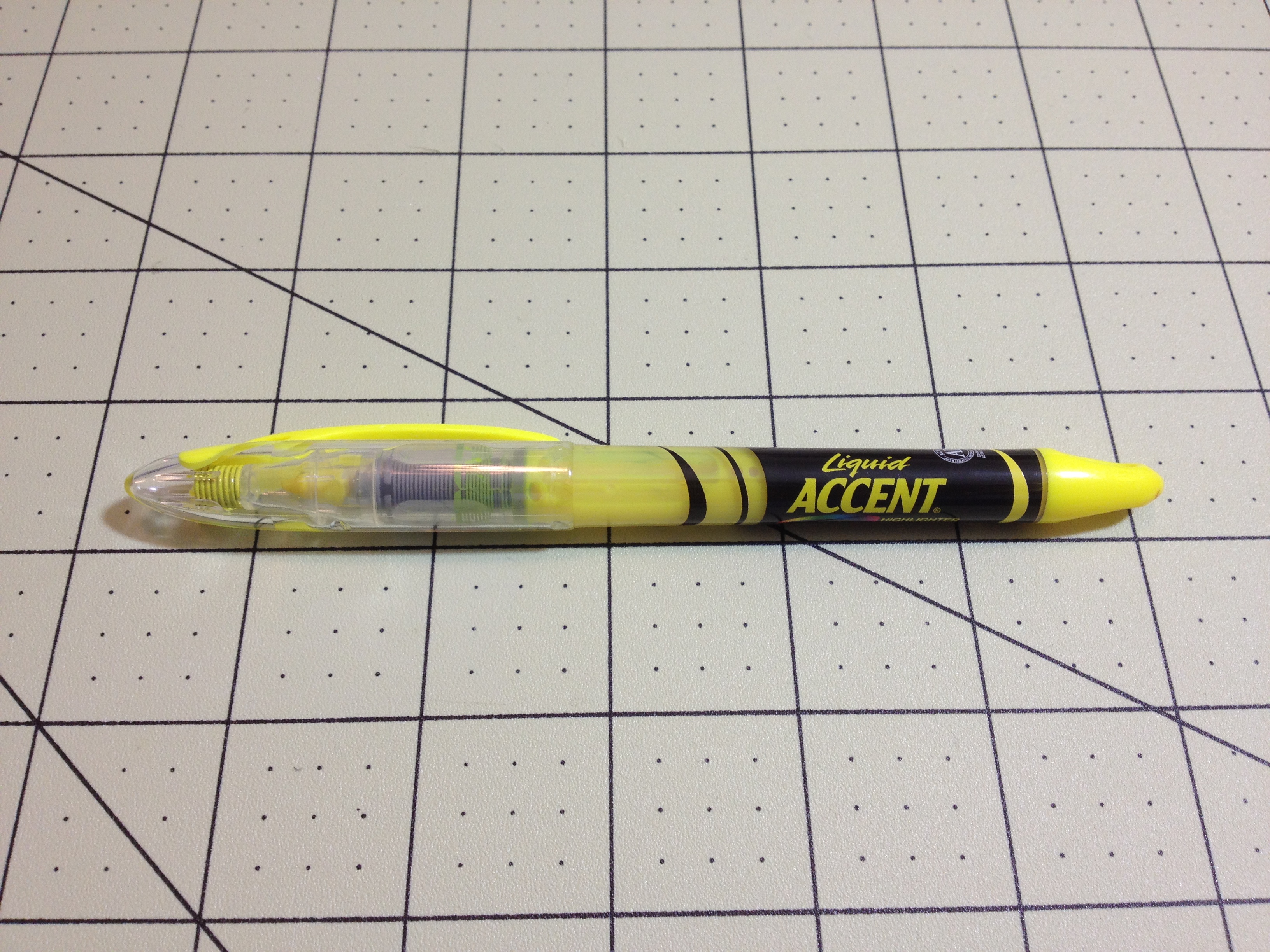 It’s a good highlighter, but it’s hard to have a bad one. It highlights stuff, it holds well, and it has a ton of ink. (I’m having trouble finding my exact brand online, there are highlighters that seem very similar produced by Sharpie and Paper:Mate {Both owned by Sanford, which is owned by Rubbermaid}, but if it’s a cheap one when it is found, that’s another plus) I don’t really have much to recommend it over any other highlighter, but if you do find it, it’s not a dud.