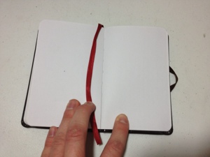 Inside there is no strict “this book belongs to:” or logo page before getting right into the 72 sheets of “ivory” sketching paper, augmented by a very cheap looking/feeling black ribbon bookmark. Inside the back cover is a page-size pocket with cloth folds for strength, and I never use these so I can’t tell you much more than that.