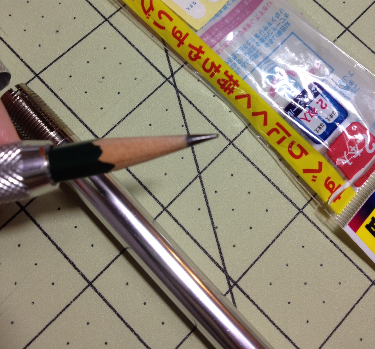 For the most part these pencils are pretty standard: a “wooden” hexagonal body with general information stamped and inked into one of the facets (each pencil also appears to have a unique number stamped but not inked into it; I am unsure of its significance). The most obvious differences between them and regular pencils is the bright-colored paint on the outside with the inside dyed a different (usually mismatched) color, and that the standard metal eraser holder has been replaced with a much larger diameter plastic one. The body looks and feels at first like a regular wood pencil, but after sharpening and handling it for a bit I would say that if it isn’t a type of plastic it is a “flaked and formed” wood that uses a different process than most pencils to give it more plasticity.