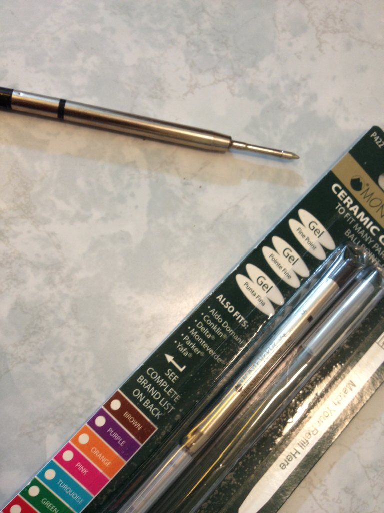 Some companies are iconic. Some companies have existed for years and have made a lasting impact on all of the products in their market today. Parker is one of these companies. And when my Parker Jotter ran out of ink, and I was trying to find a refill, this became apparent. Because while there aren’t many Parker brand click pen refills to be found in the world (it can be done, and much easier than some other things, but still…) it is quite easy to find a refill that will fit into a Parker pen. In fact, it’s more common to find pens that fit such refills than it is to find a genuine Parker pen now. Monteverde is one such company that makes both refills and pens of the Parker type, and I’ll be looking at the Ceramic Gel refill from them today.